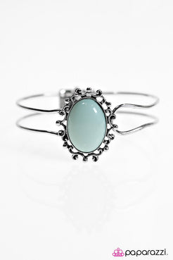 A perfectly polished bead tinted in the soothing shade of Limpet Shell sits inside a frilly silver frame for a vintage inspired style. Features an adjustable hinged closure. Sold as one individual bracelet.