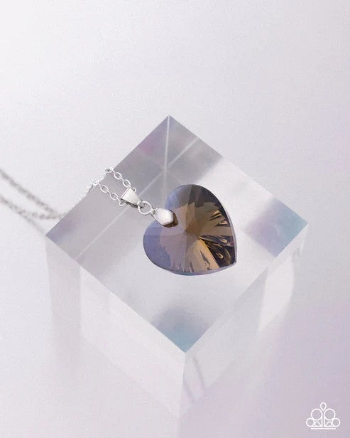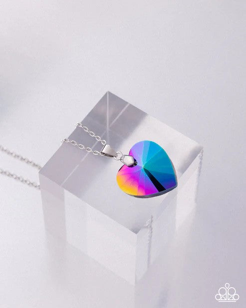 Chiseled into a charming heart, an oversized multicolored gem slides along a dainty silver chain below the collar for a flirtatious finish. Features an adjustable clasp closure. Due to its prismatic palette, color may vary.